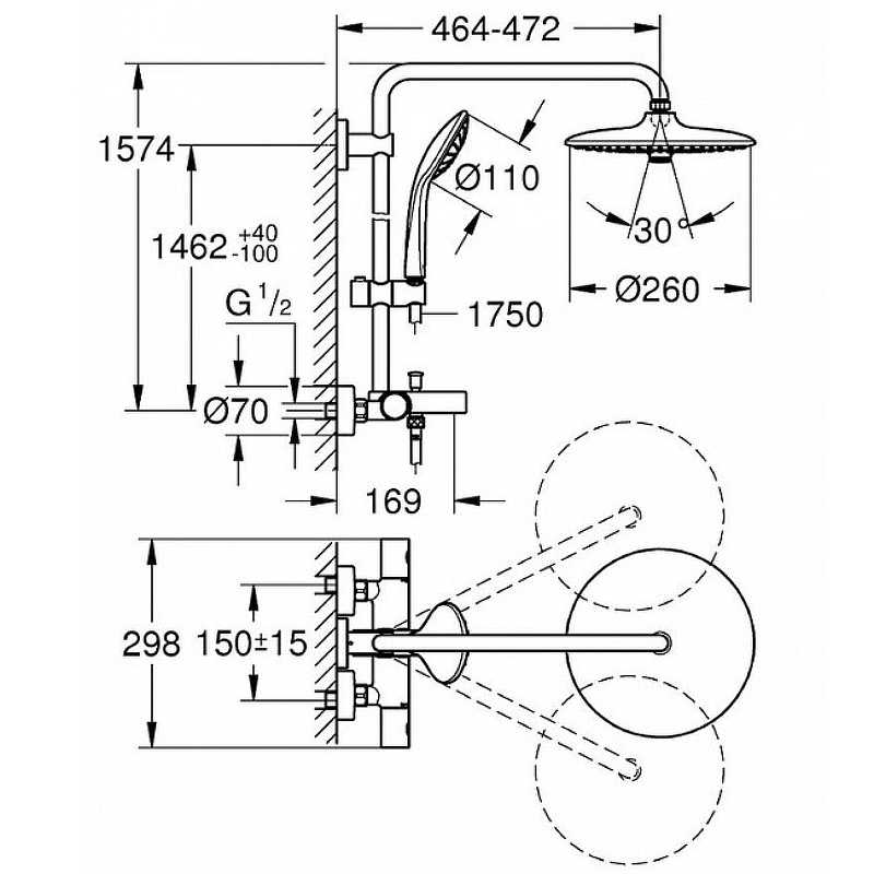 - Верхний душ Grohe Euphoria SmartControl 26457