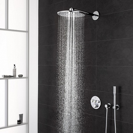 Rainshower 310 Верхний душ с 2 режимами струи (26 475 000), которые можно включать по отдельности и два одновременно - нежный, расслабляющий GROHE PureRain и новый, восстанавливающий режим GROHE ActiveRain, который идеально подходит для смывания шампуня или массажа головы.