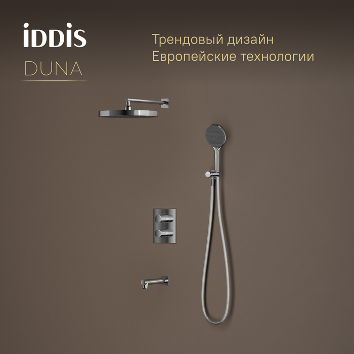 Душевая система Iddis Duna с тропическим ручным душем и изливом термостат глянцевый хром (DUNSBSTi68)