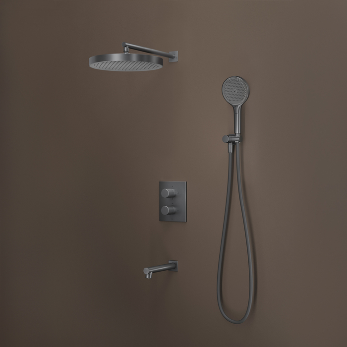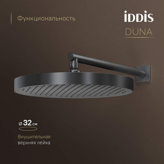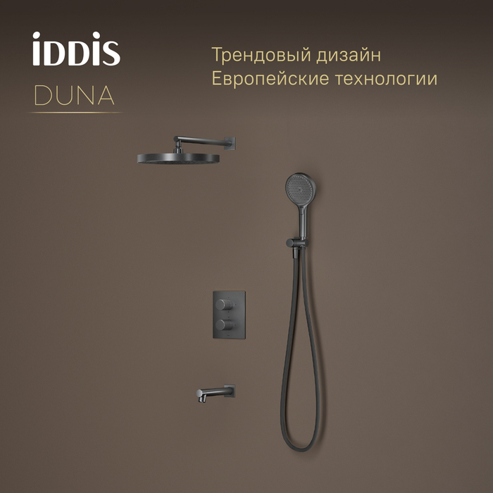 Душевая система Iddis Duna с тропическим ручным душем и изливом термостат графит матовый (DUNGMSTi68)
