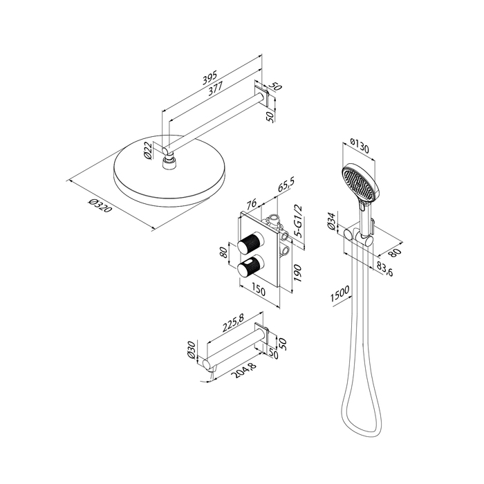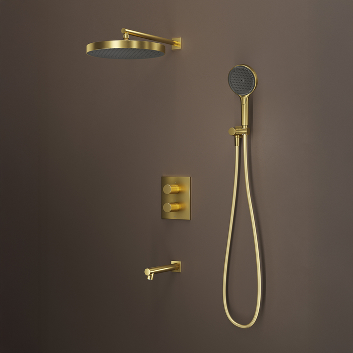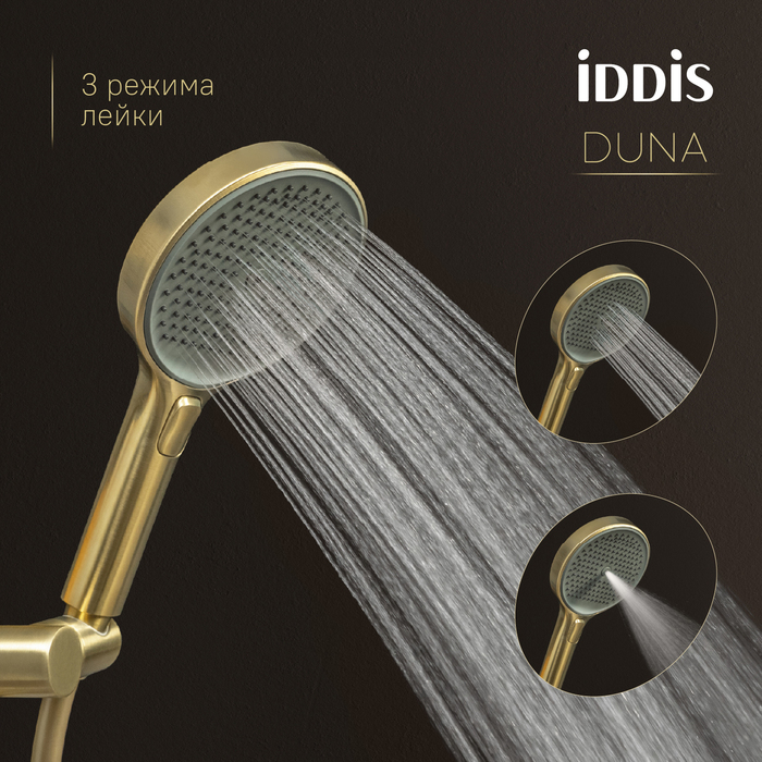 Душевая система Iddis Duna с тропическим ручным душем и изливом термостат матовое золото (DUNMGSTi68)