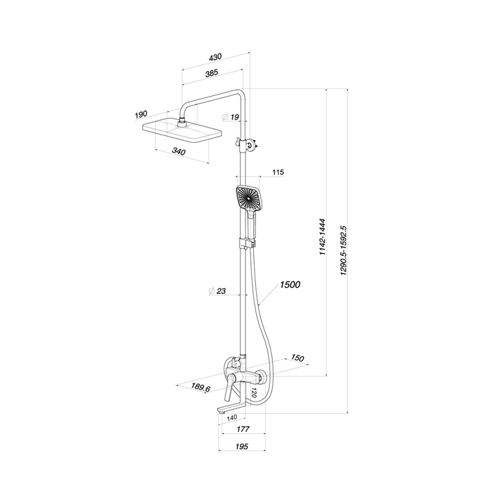 Душевая система Iddis Parker с тропическим душем и изливом матовый графит (PARGM3Fi060)