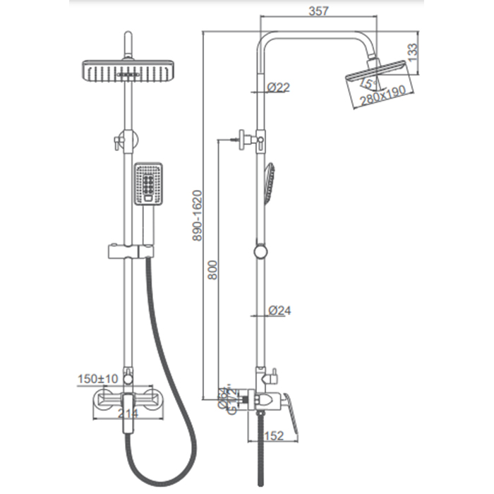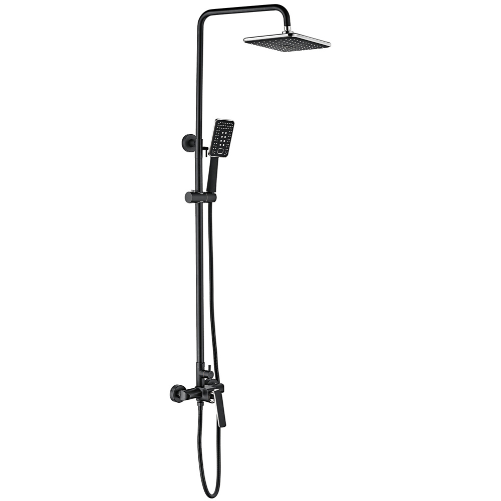 Система душевая (черный, смеситель, душ.стойка, верх.душ, душ.лейка, душ.шл., держ. душ.лейки)
