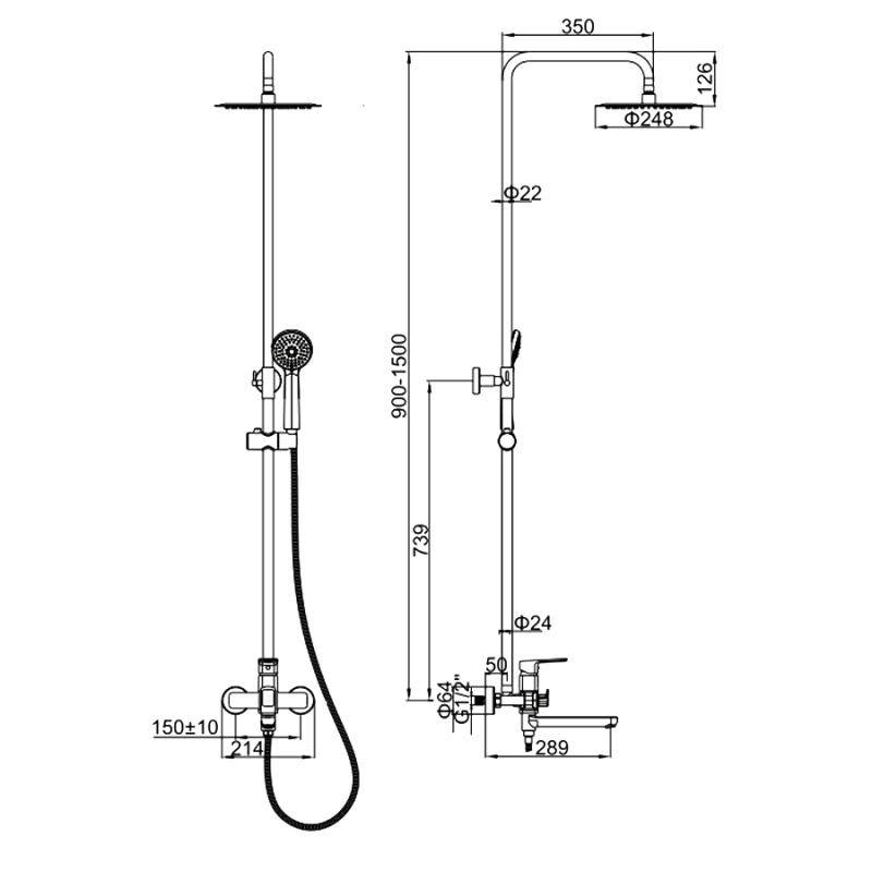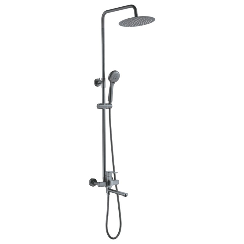 Состав поставки: смеситель, душевая стойка, верхний душ, душевая лейка, душевой шланг, держатель для душевой лейки, настенный держатель, отражатели, эксцентрики