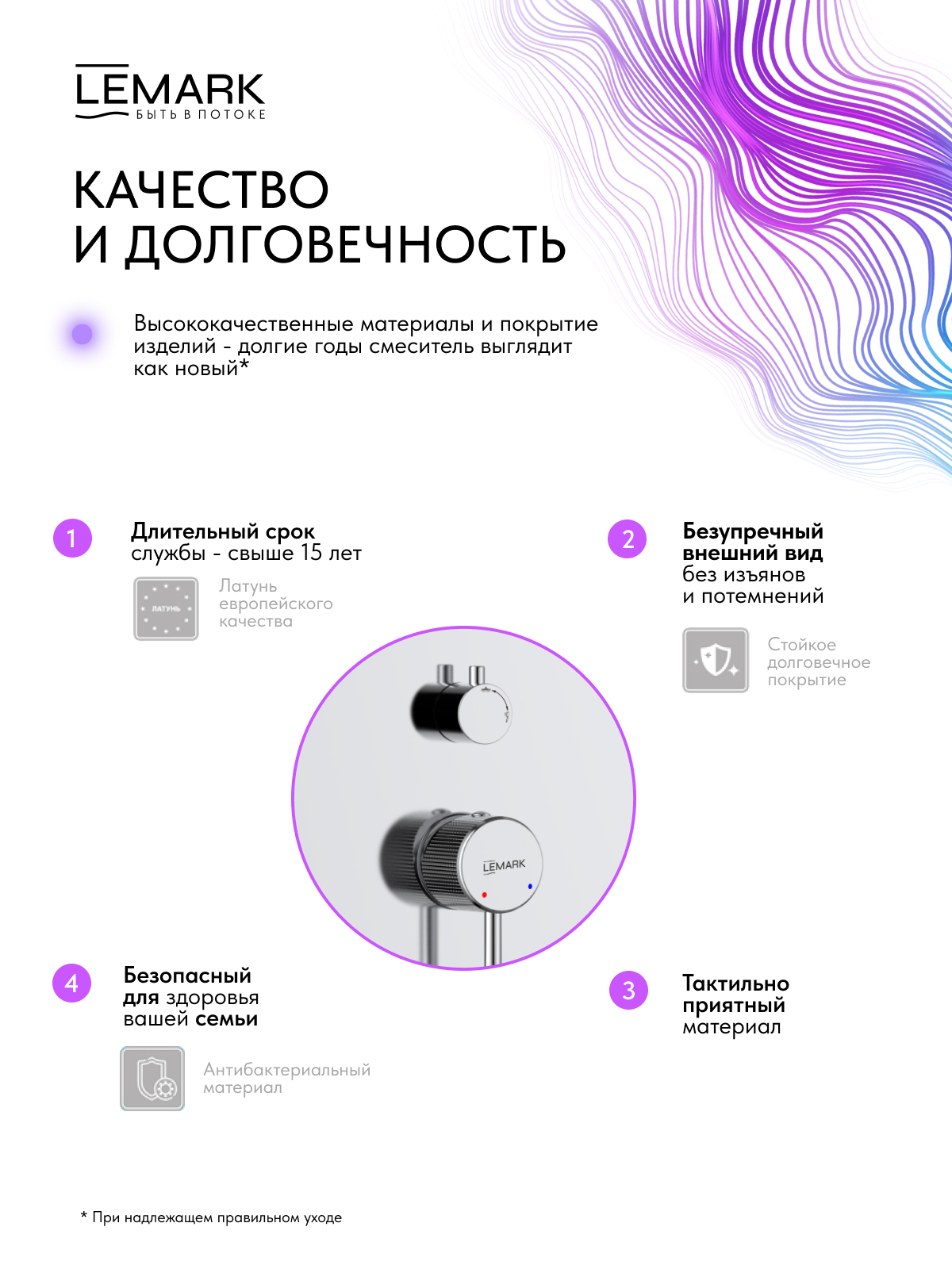 Срок службы смесителя – 15 лет / аксессуаров - 5 лет