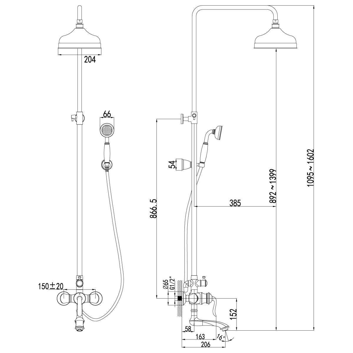 - Регулируемая по высоте штанга соединяет верхний душ со смесителем, оснащенным керамическим картриджем 35 мм.