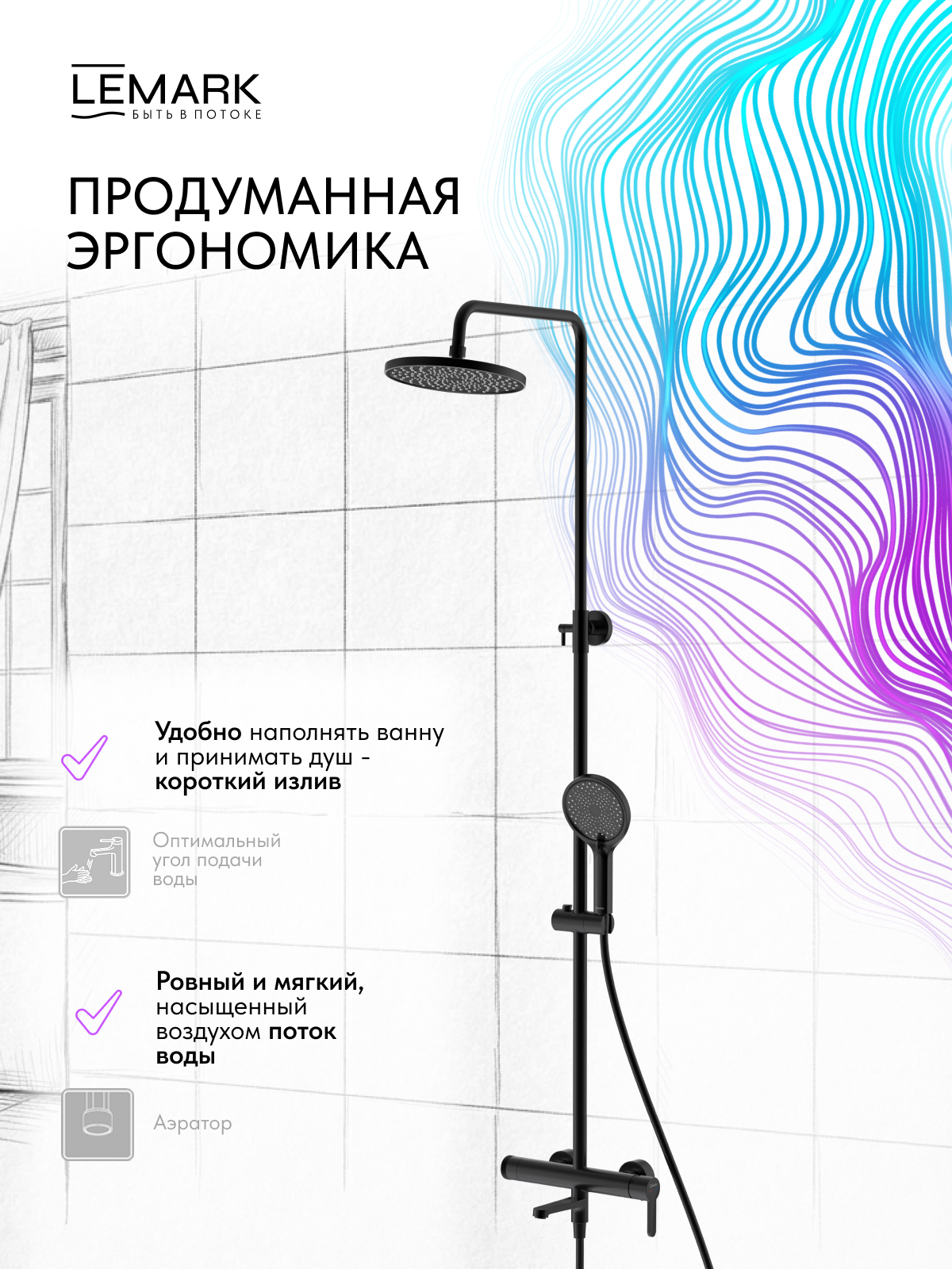 Душевая система Lemark Ladoga черный (LMF-0726B-BL)