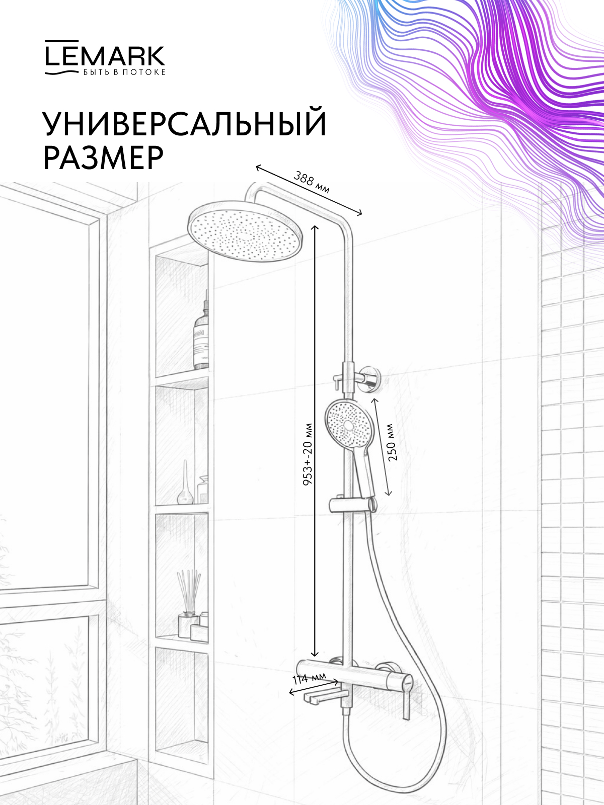Управлять подачей воды и переключение режимов просто благодаря системе 2 в 1 (смеситель + дивертор)