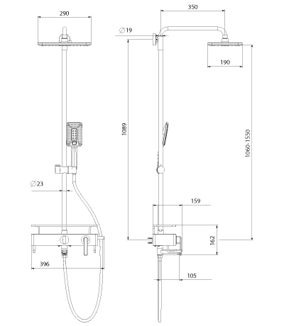 - Элегантная душевая стойка Lemark Mista LM6462WG включает в себя смеситель с рычажным управлением, регулируемую штангу, верхний и ручной душ.