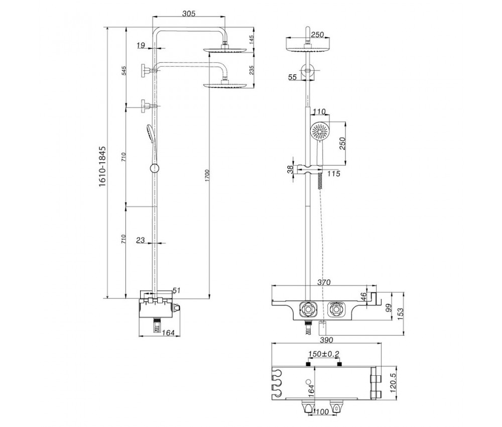 - Полочка со съемными крючками служит держателем для лейки и местом для хранения шампуней или гелей для душа.