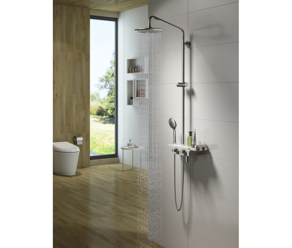 - Верхний душ функционирует в режиме «тропический дождь», который привносит в гигиенические процедуры дополнительный комфорт и приятные ощущения.