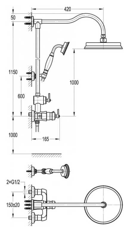 Душевая система Liberty с термостатическим смесителем, с ручным и верхним душем, хром (LIBERTY-F-CD-T-01)