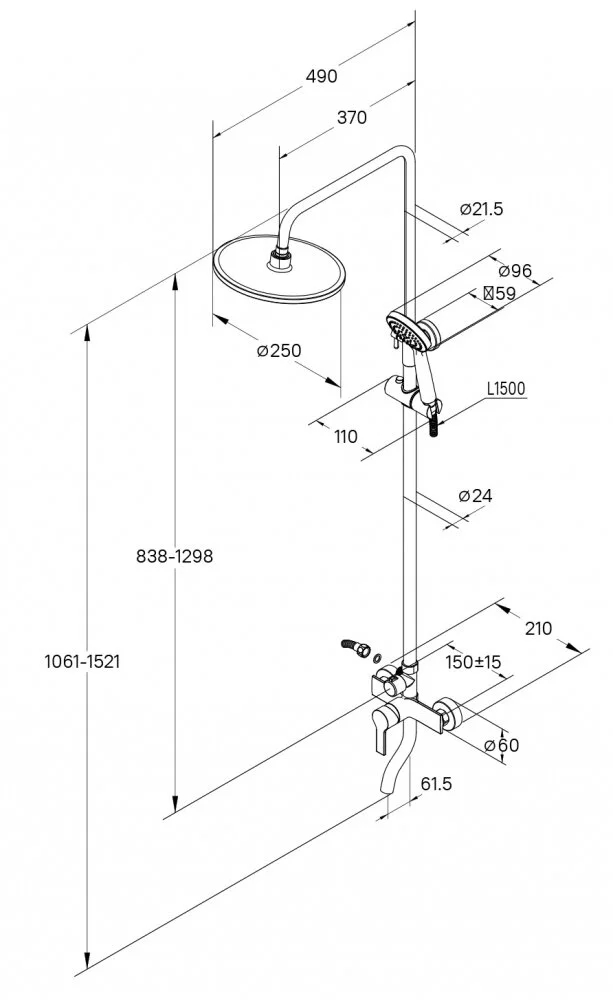 Душевая система с тропическим душем, однозахватный, латунь, никель-хромовое покрытие, керамический картридж 35 мм, пластиковый аэратор, верхняя лейка из ABS-пластика, диаметр 250 мм, ручная лейка из ABS-пластика, диаметр 100 мм, 1 режим, держатель для ручной лейки - ABS-пластик, 3-х режимный керамический дивертор, шланг в металлической оплетке 1,5 м, штанга для душа - нержавеющая сталь с возможностью регулировки по высоте. В комплекте эксцентрики с отражатели, комплект уплотнителей. Упаковка: картонная коробка.