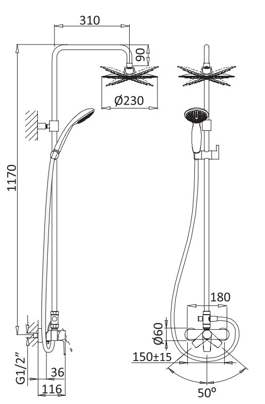 Душевая система Nautic со смесителем, ручным и верхним душем 250 мм ABS, sunset (NAUTIC-CD-25-SS)