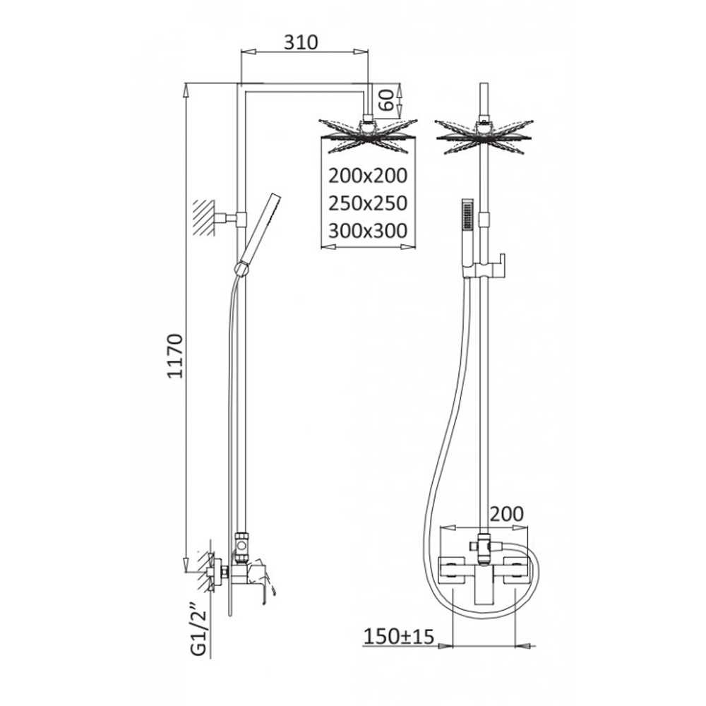 Душевая система Porta со смесителем для верхнего и ручного душа, верхний душ, sunrise (PORTA-CD-SR)