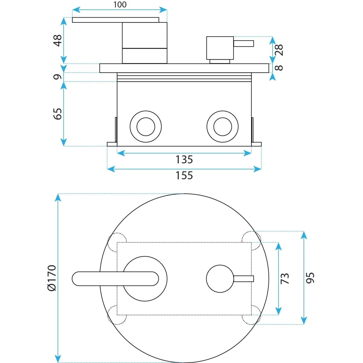Комплектация: душевой шланг, душевая лейка, подключение для душевого шланга с держателем, верхний душ, скрытая монтажная часть, смеситель, кронштейн