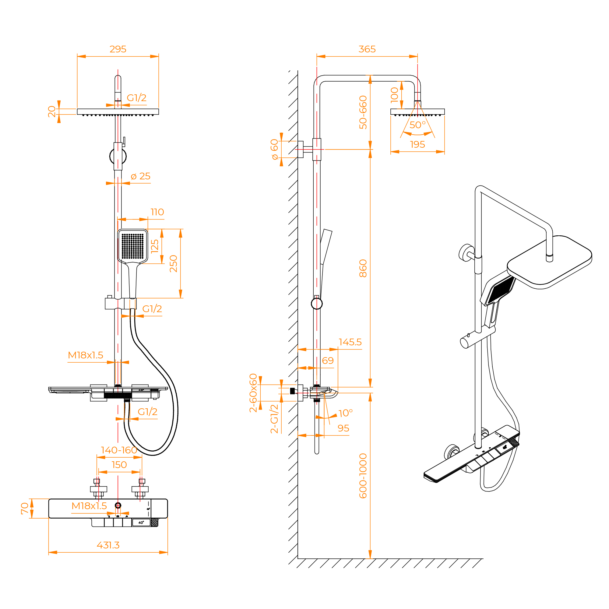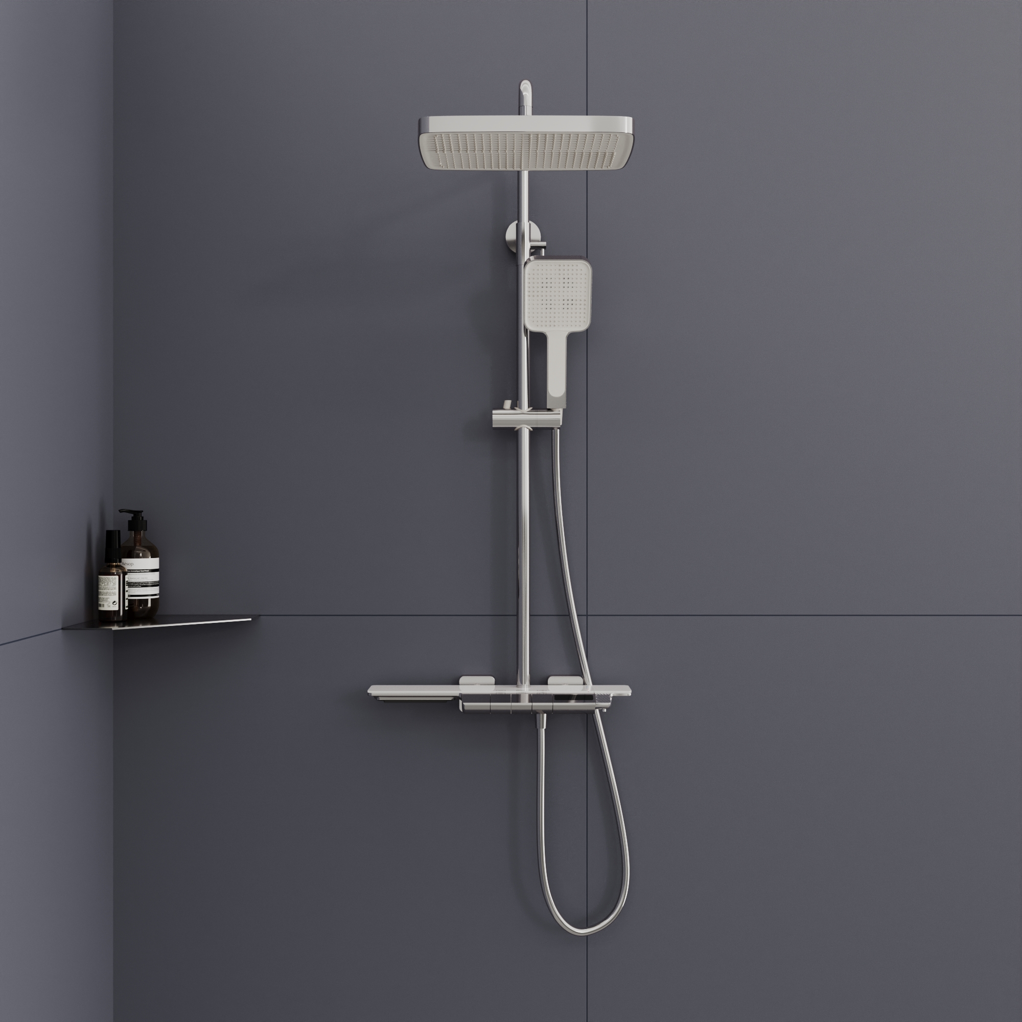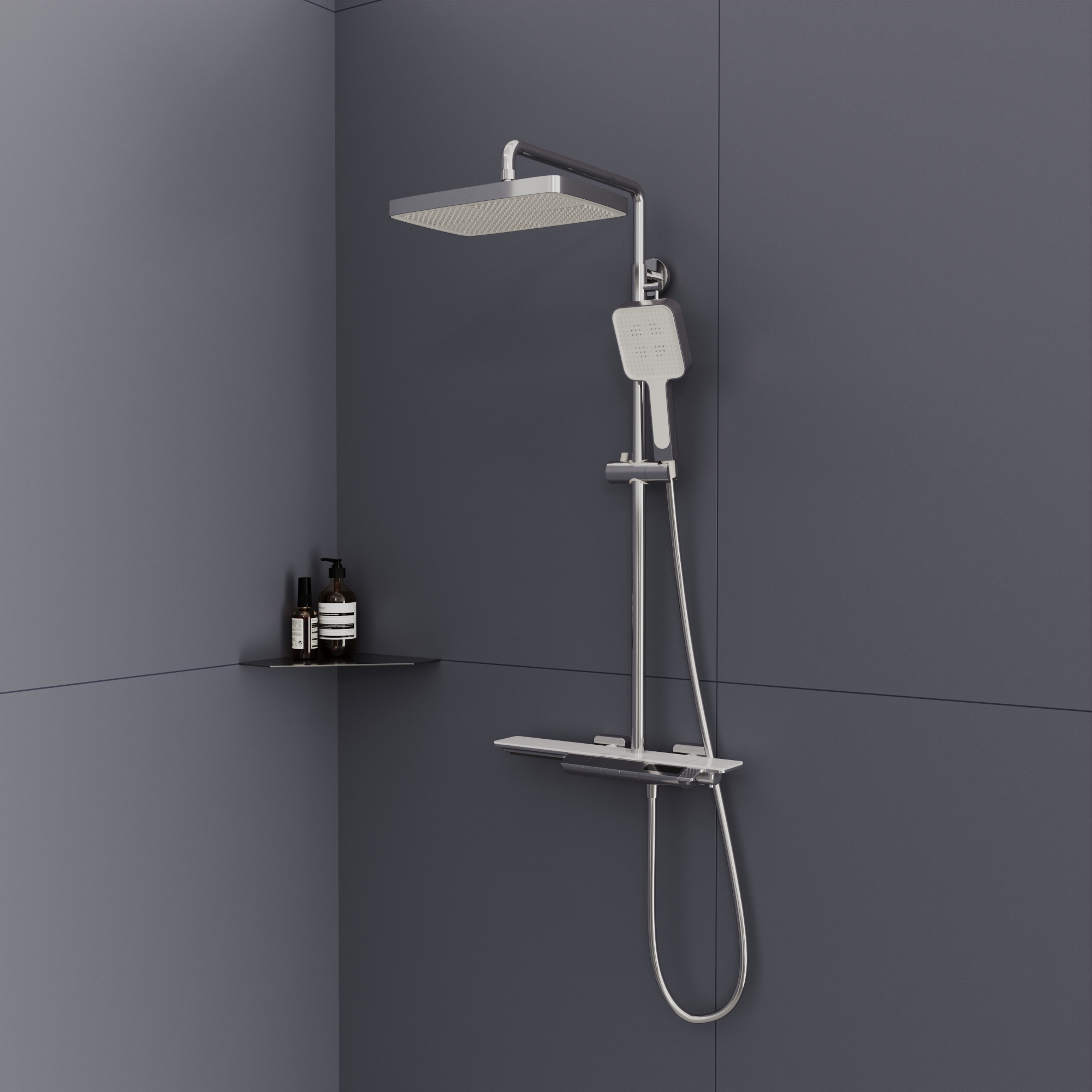 Головной душ из высокопрочного ABS-пластика оснащён со шарнирным креплением, что позволяет выбрать необходимый угол направления воды
