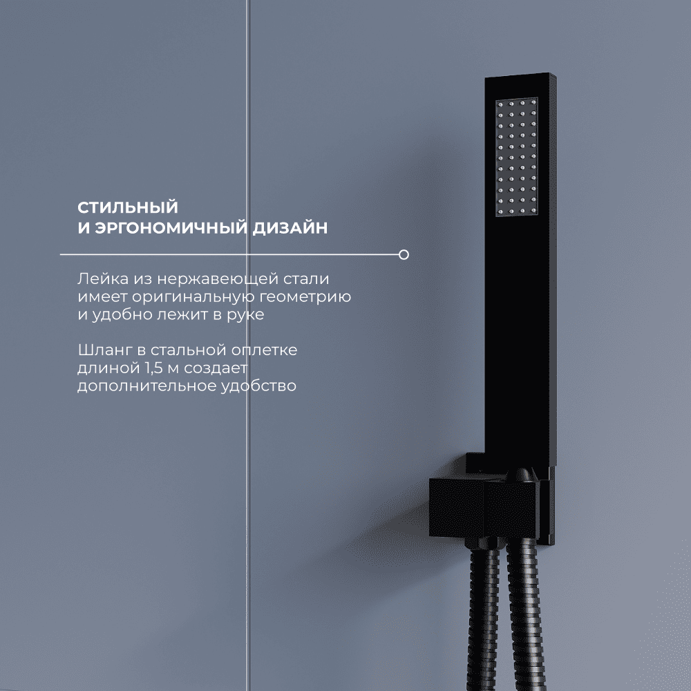 Комплектация и материал исполнения: Головной душ, горизонтальный держатель из нержавеющей стали. Головной душ оснащён шарнирным креплением, что позволяет выбрать необходимый угол направления воды Держатель ручного душа – латунь Стальной шланг ручного душа, длина 1.5 насадка ручного душа - Нержавеющая сталь Излив-латунь (поворотный), позволяет более эргономично использовать пространство Смеситель с керамическим картриджем Плавное управление: литой рычаг. Монтаж: встраиваемый. Элемент скрытого монтажа в комплекте. Ресурс 10 лет.