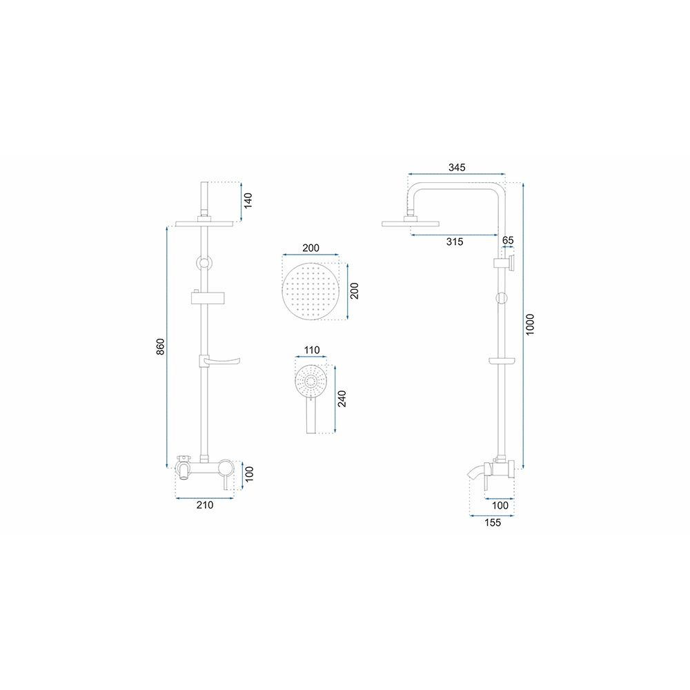 Монтаж: настенный. Верхний душ: 200*200 мм. Излив: литой. Дивертор: керамический.