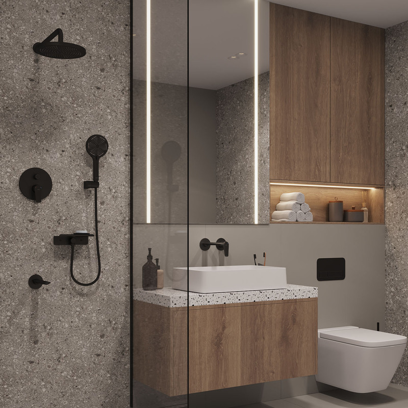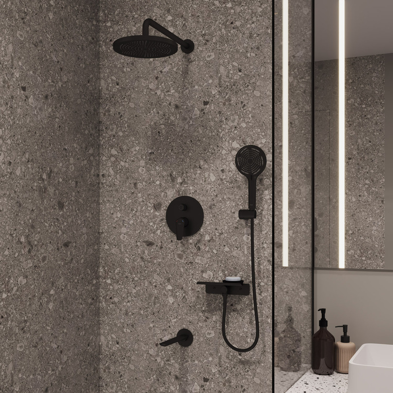 Душевая система скрытого монтажа Milardo Dale с тропическим душем ручным душем и изливом черный матовый (DALBL03M68)