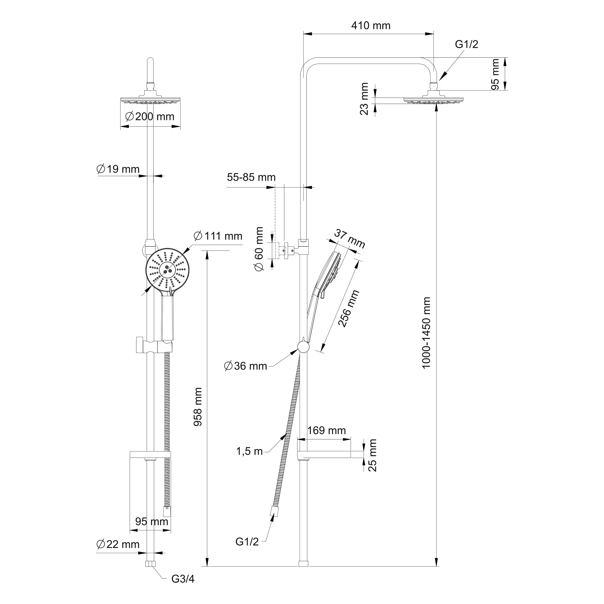 Душевой гарнитур Swedbe Calypso хром/св. серый (5062)