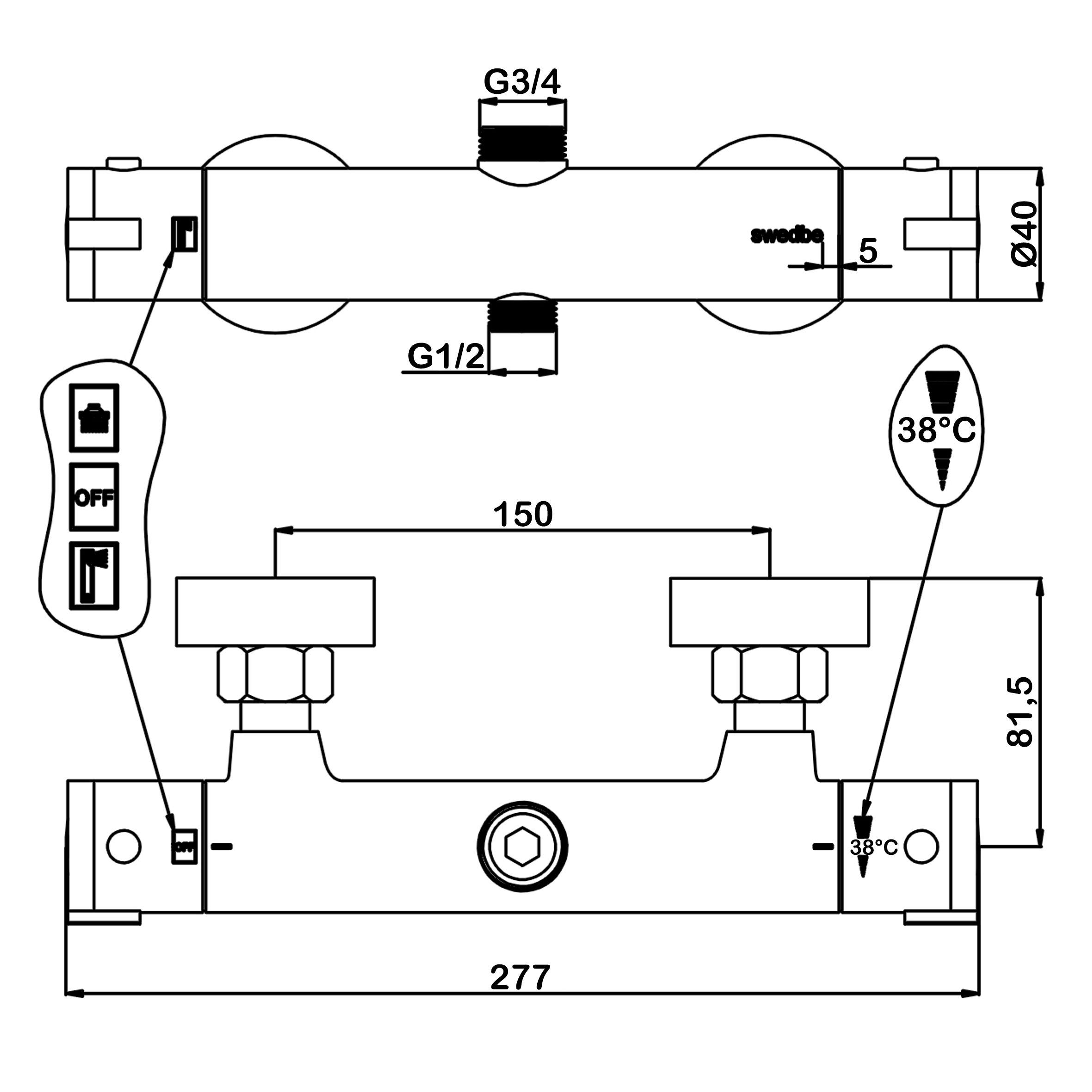 ПРЕИМУЩЕСТВА: - термостатический смеситель для душа в комплекте - керамическая кран-букса