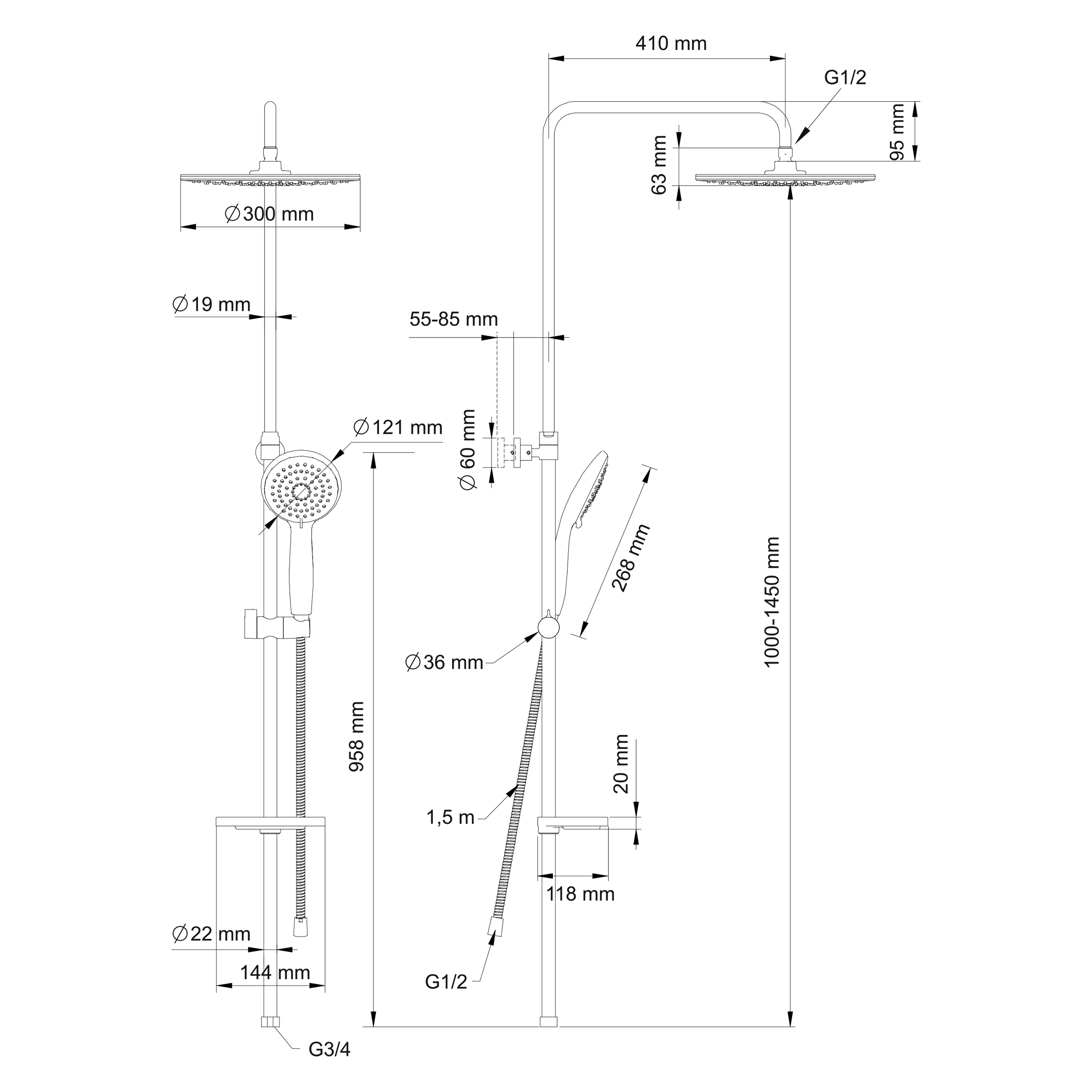 - ручной душ, с трехрежимной лейкой