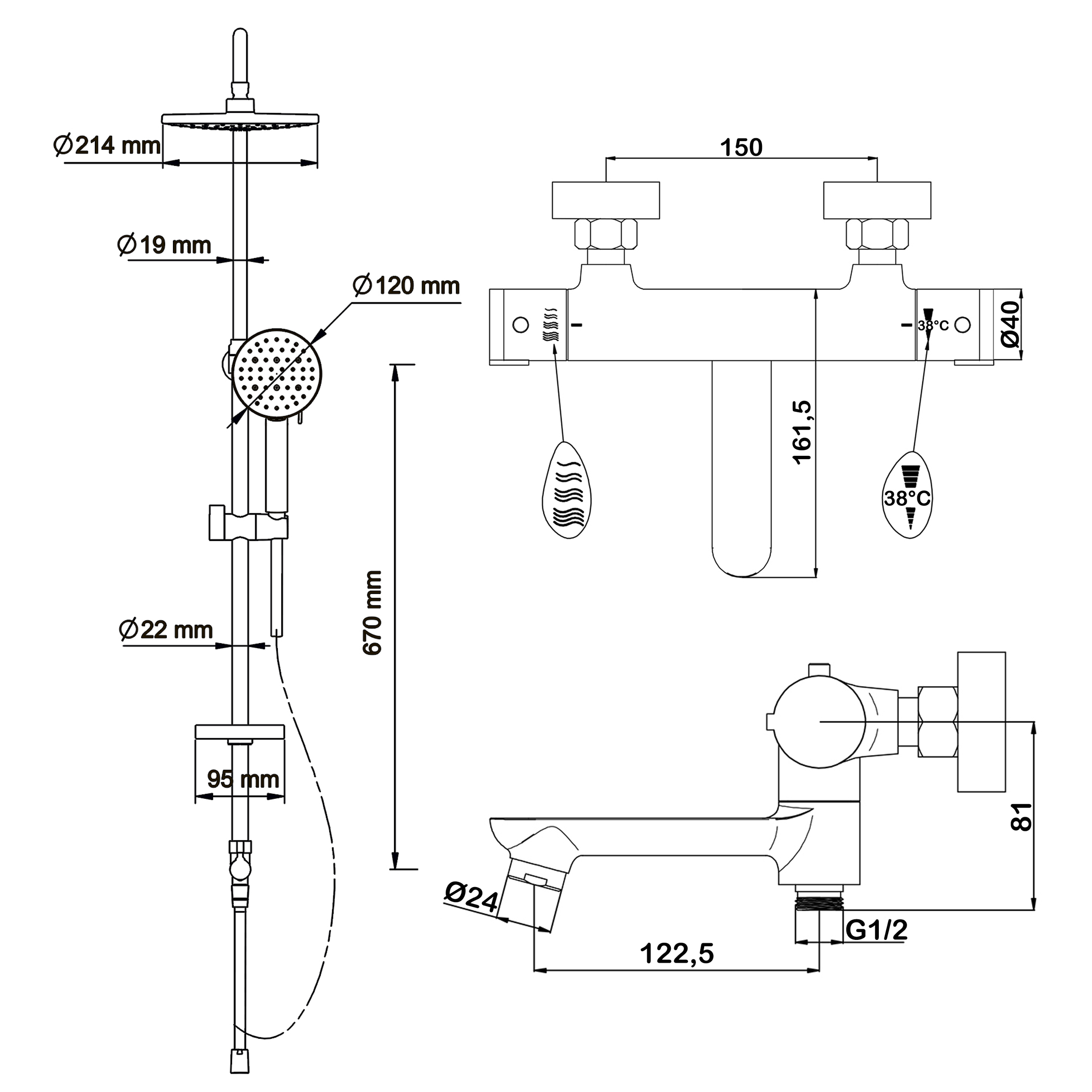 Душевая система Swedbe Hermes с термостатическим смесителем для ванны черный (5114B)