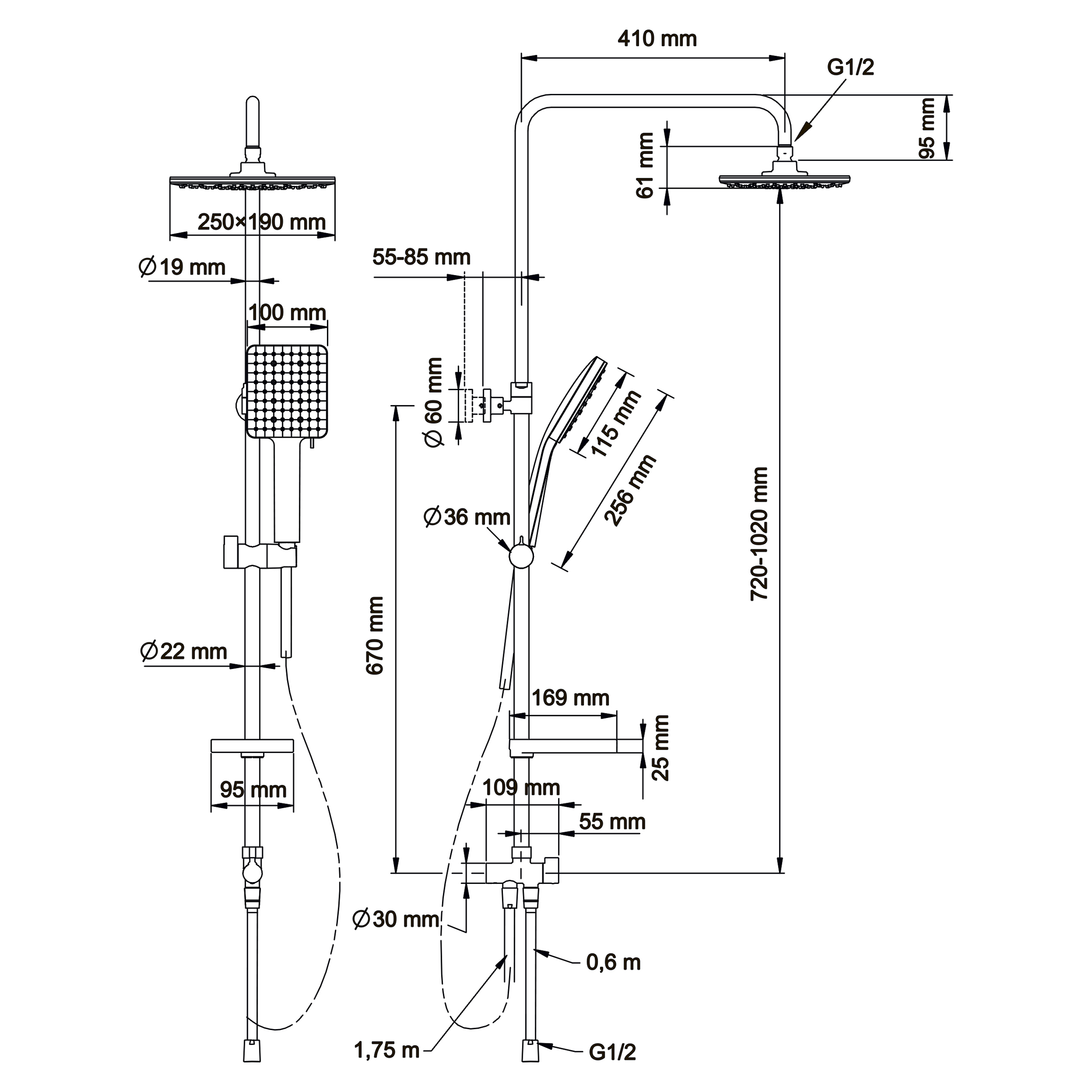 Душевая система Swedbe Hermes с термостатическим смесителем для ванны черный (5115B)