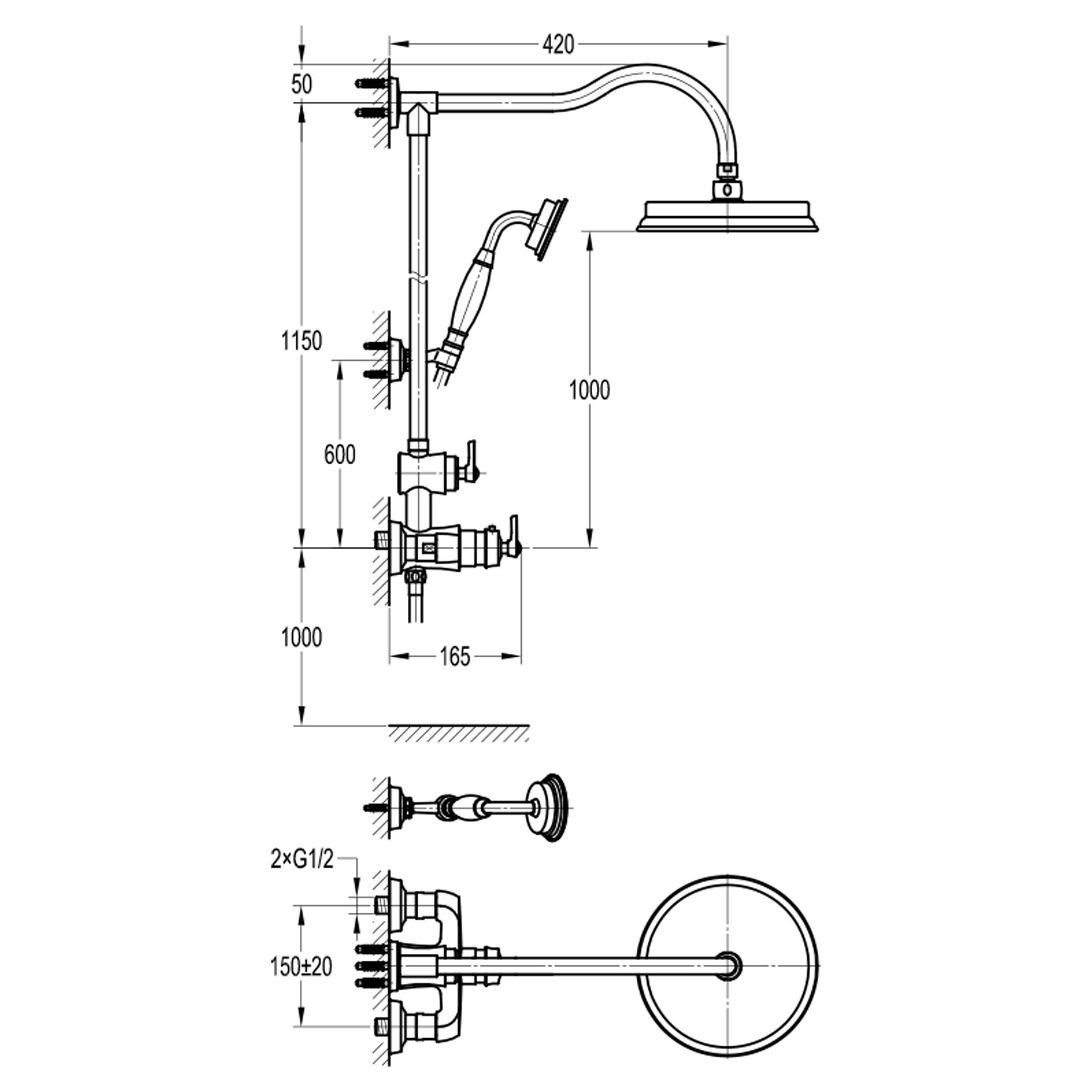 Душевая система Swedbe Terracotta Art с термостатическим смесителем терракота (темная бронза) (2512)