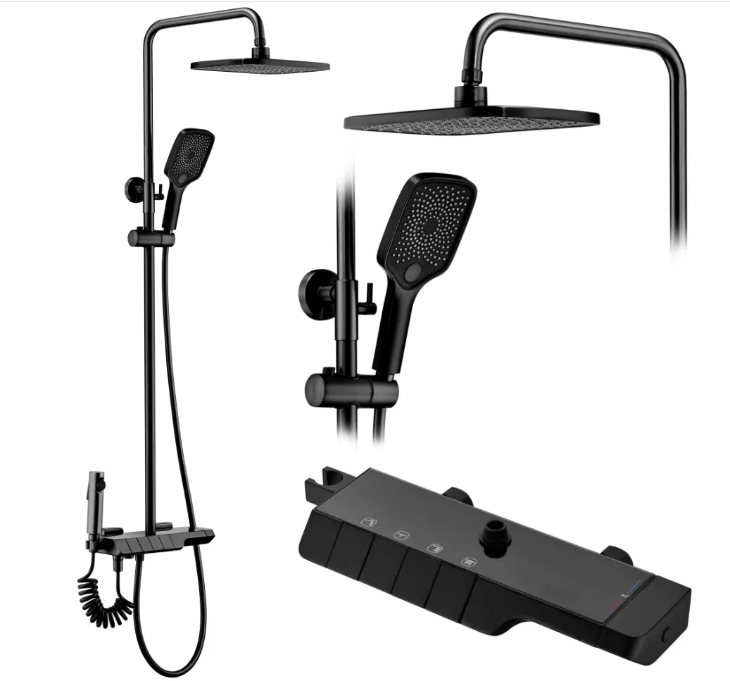 Душевая система термостатическая на четыре режима Rea Rob Black mat (REA-P6627)