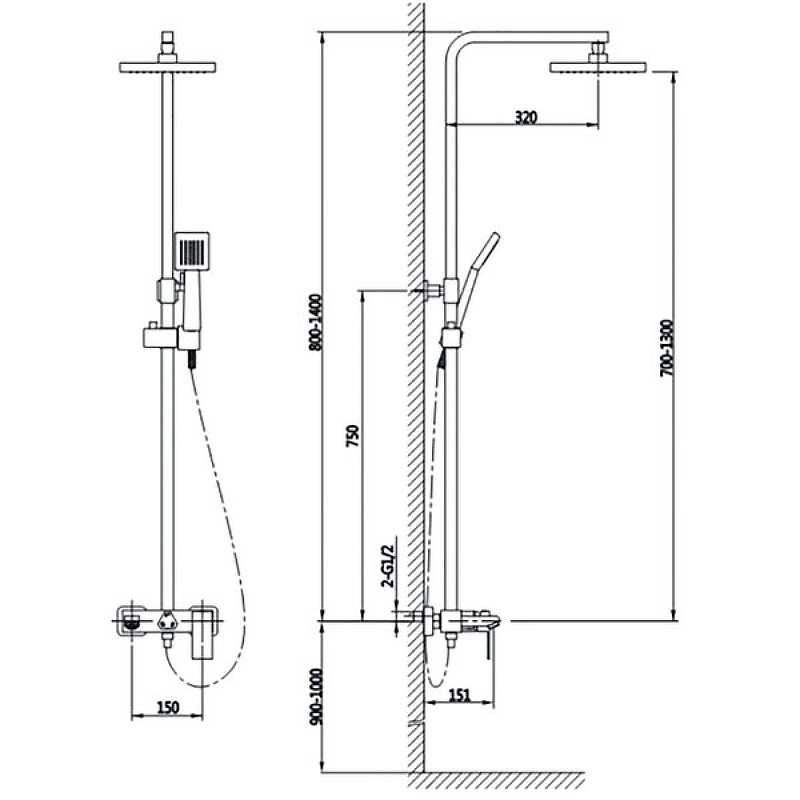 - Ручной душ с 1 типом струи и регулируемым по высоте креплением.