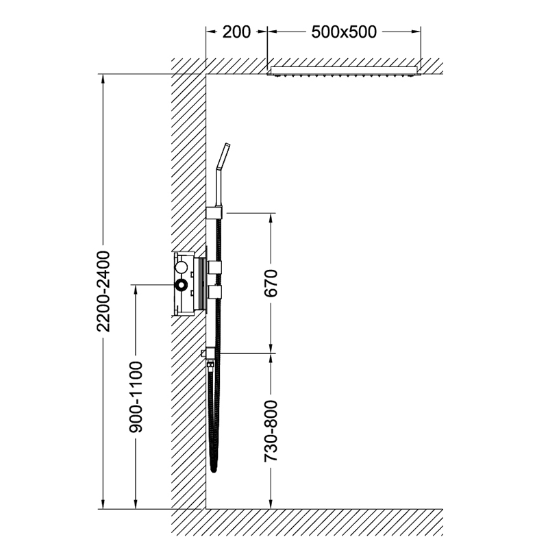 - Квадратный верхний душ размером 50*50 см..