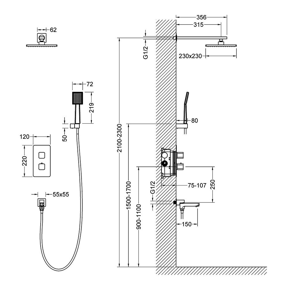 Душевая система Timo Petruma скрытого монтажа с термостатом золото матовое (SX-5049/17SM)