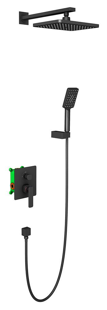 Состав поставки: штанга тропического душа с декоративным отражателем, шланг душа 1.5 м, тропический душ (пластик), смеситель скрытого монтажа с монтажной коробкой, ручная лейка (пластик), ручка регулировки напора воды, ручка дивертора, декоративная накладка смесителя (латунная), держатель ручной лейки, отвод из стены