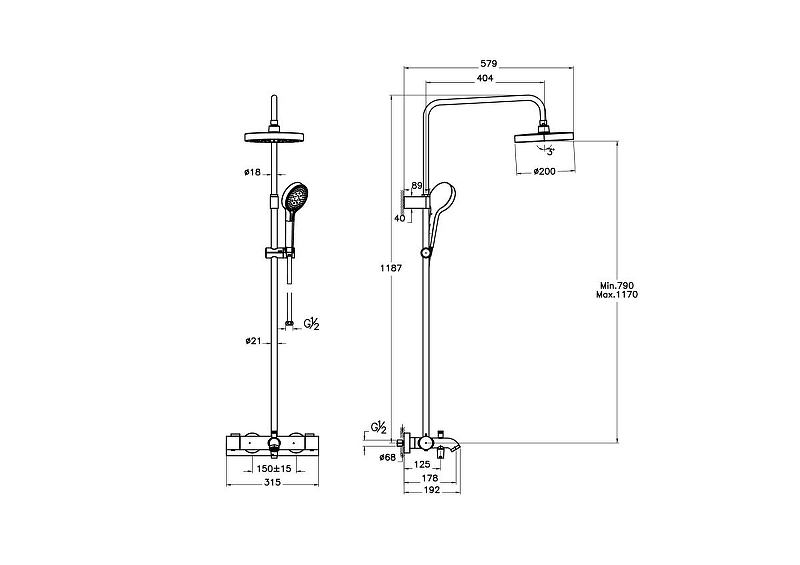 Base Round Душевая колонна с термостатическим смесителем для ванны, черный матовый