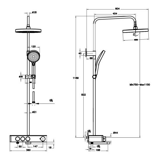 Core Round Душевая система с термостатическим смесителем для ванны, хром