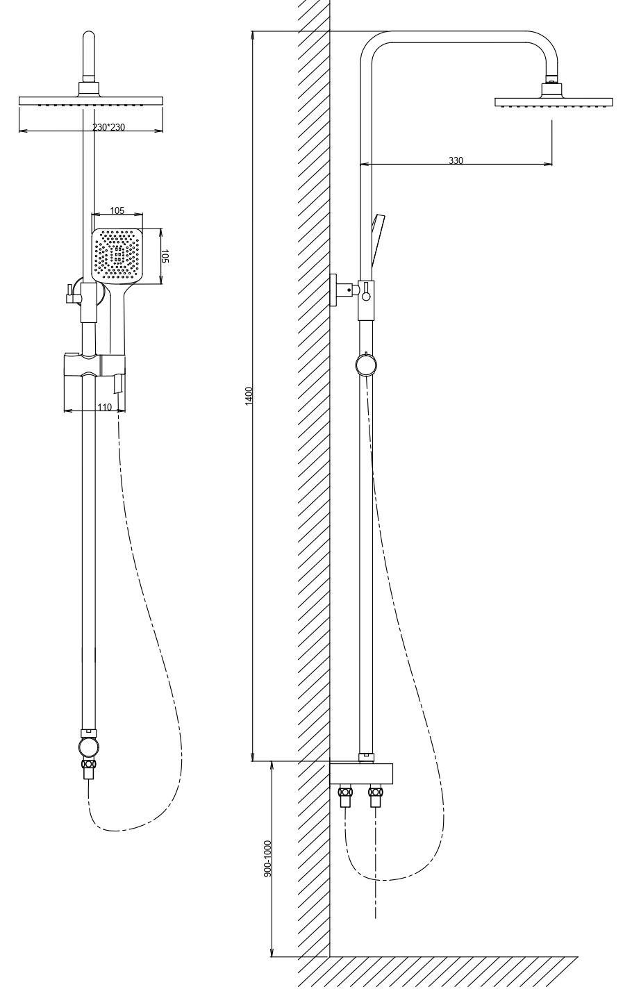 Размер верхнего душа, мм: 230х230