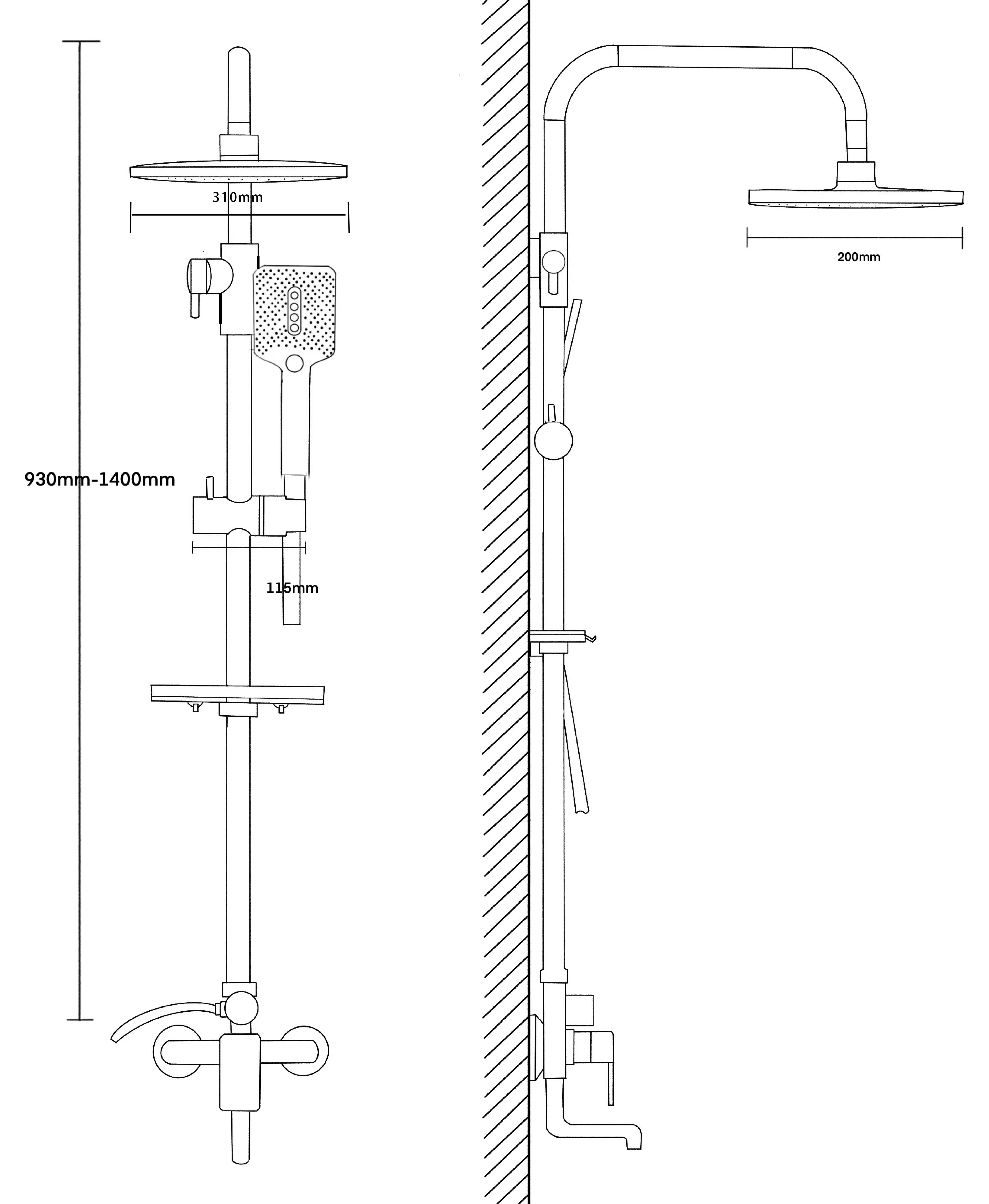 Вынос верхнего душа, мм: 320