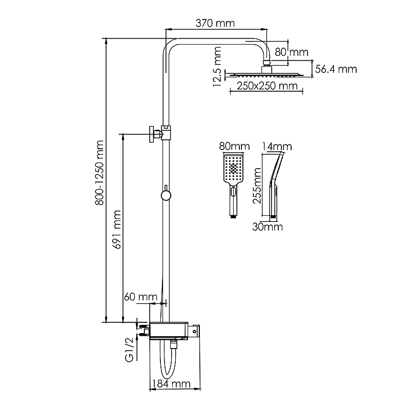 - Душевая насадка 250 x 250 мм, 112 форсунок, нержавеющая сталь