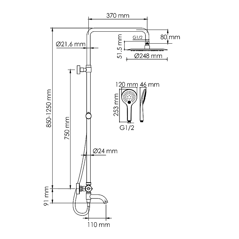 - Душевая насадка 300 мм, 168 форсунок, нержавеющая сталь