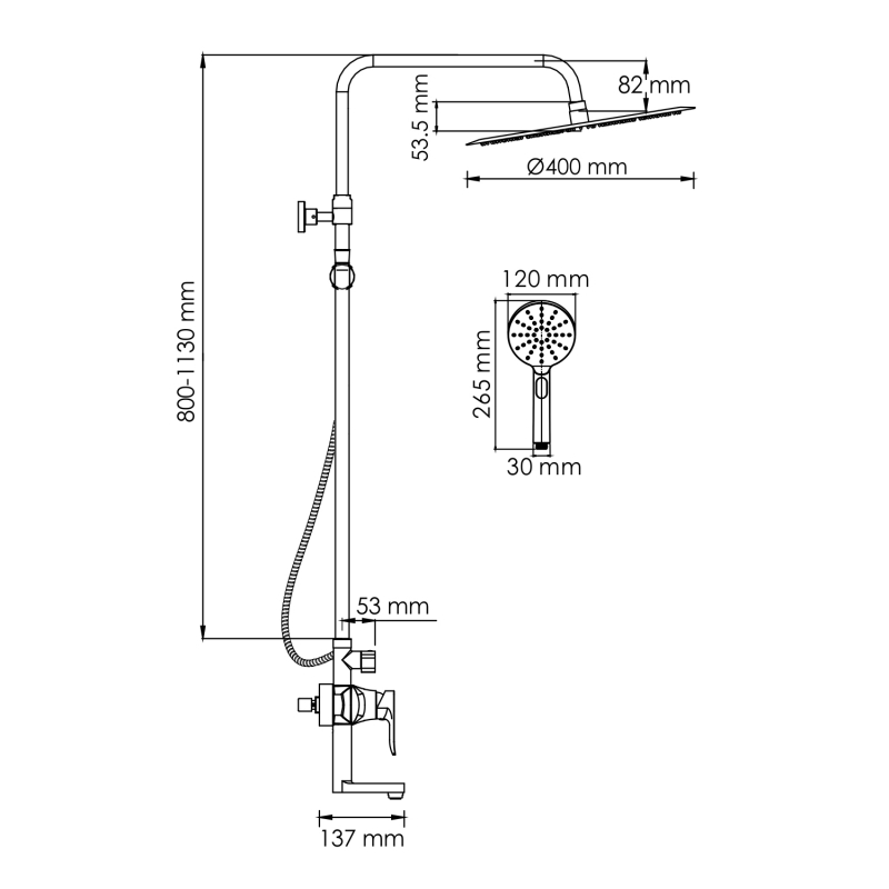 - Стойка для душа, 22 мм регулируемая по высоте