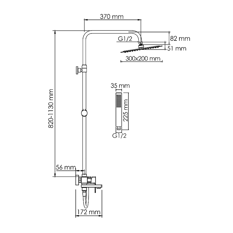 - Душевая насадка 300х200 мм, 112 форсунок, нержавеющая сталь