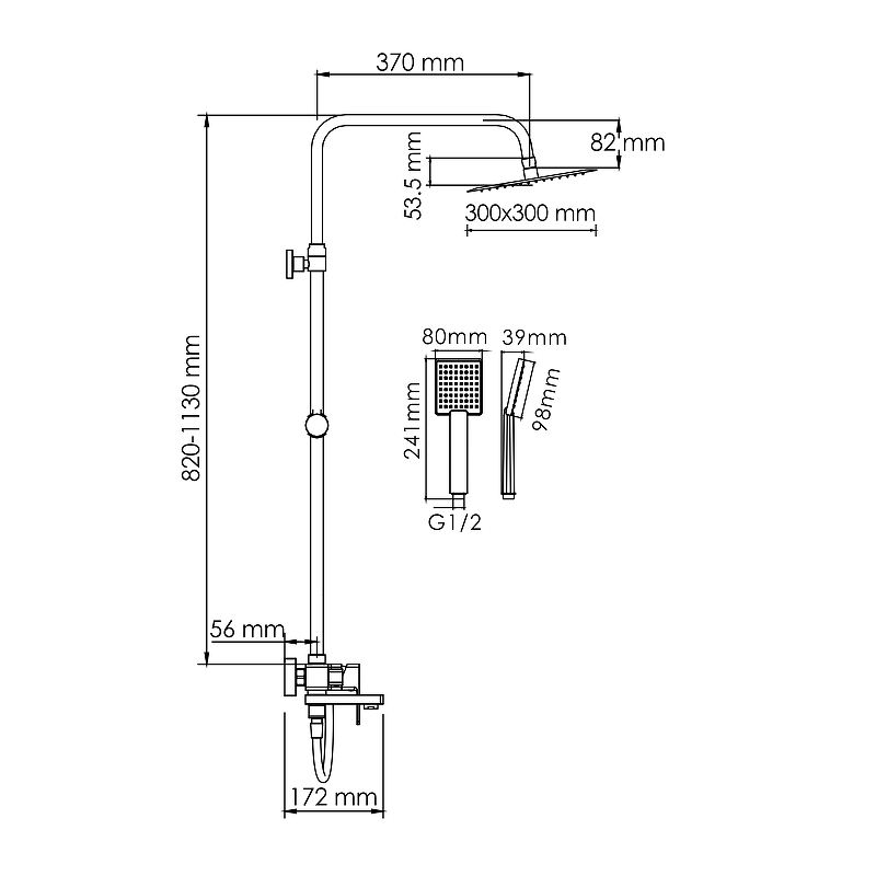 - Душевая насадка 300 x 300 мм, 196 форсунок, нержавеющая сталь