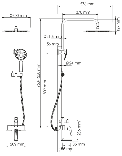 - Дополнительные функции: верхний душ может вращаться и менять положение / можно отрегулировать по высоте положение отдельных частей стойки