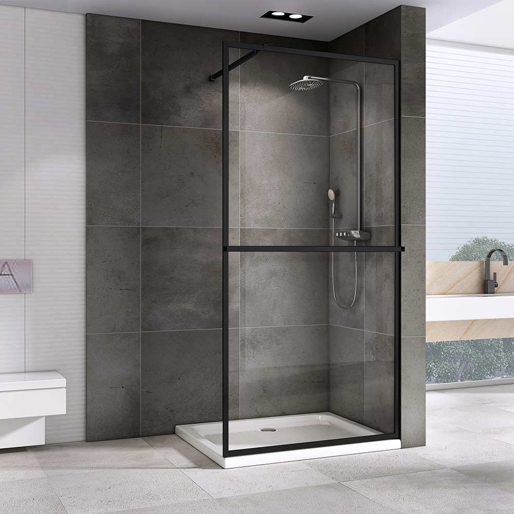 Душевая стенка Abber Immer Offen 100x200 стекло прозрачное, профиль черный (AG60100B8)