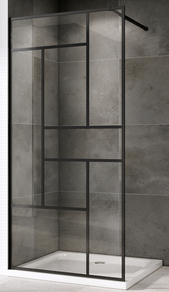 Душевая стенка Abber Immer Offen 100x200 стекло прозрачное, профиль черный (AG63100B8)