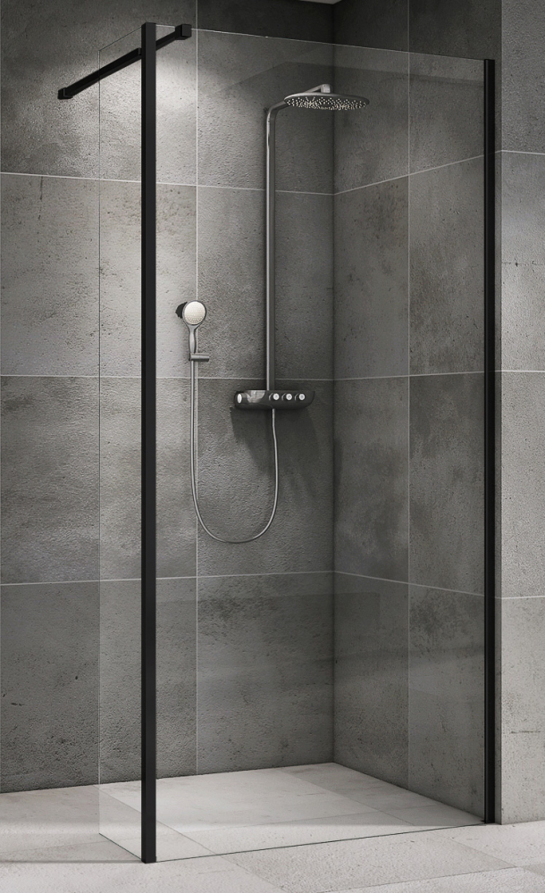 Душевая стенка Abber Immer Offen 100x200 стекло прозрачное, профиль черный (AG66100B)
