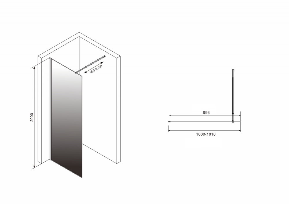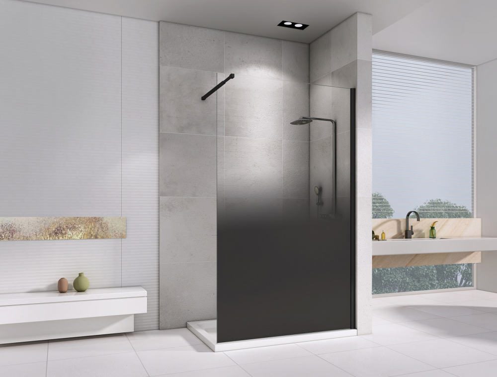 Душевая стенка Abber Immer Offen 100x200 стекло прозрачное/тонированное, профиль черный (AG69101BD)