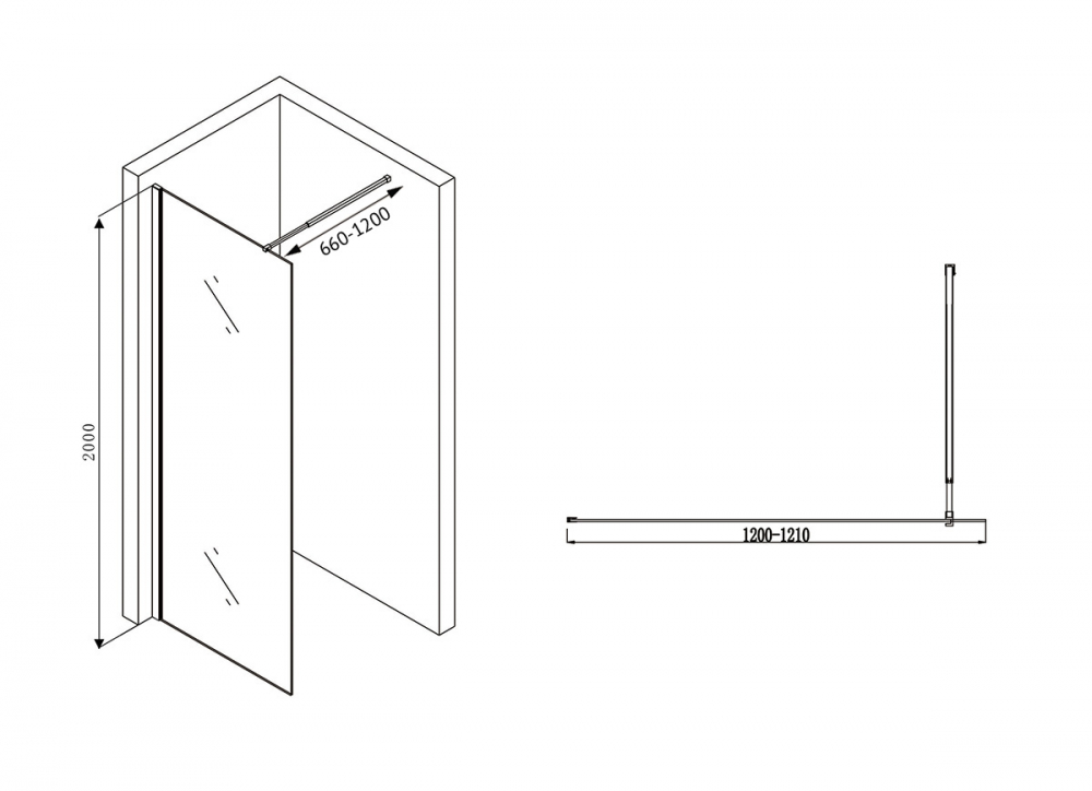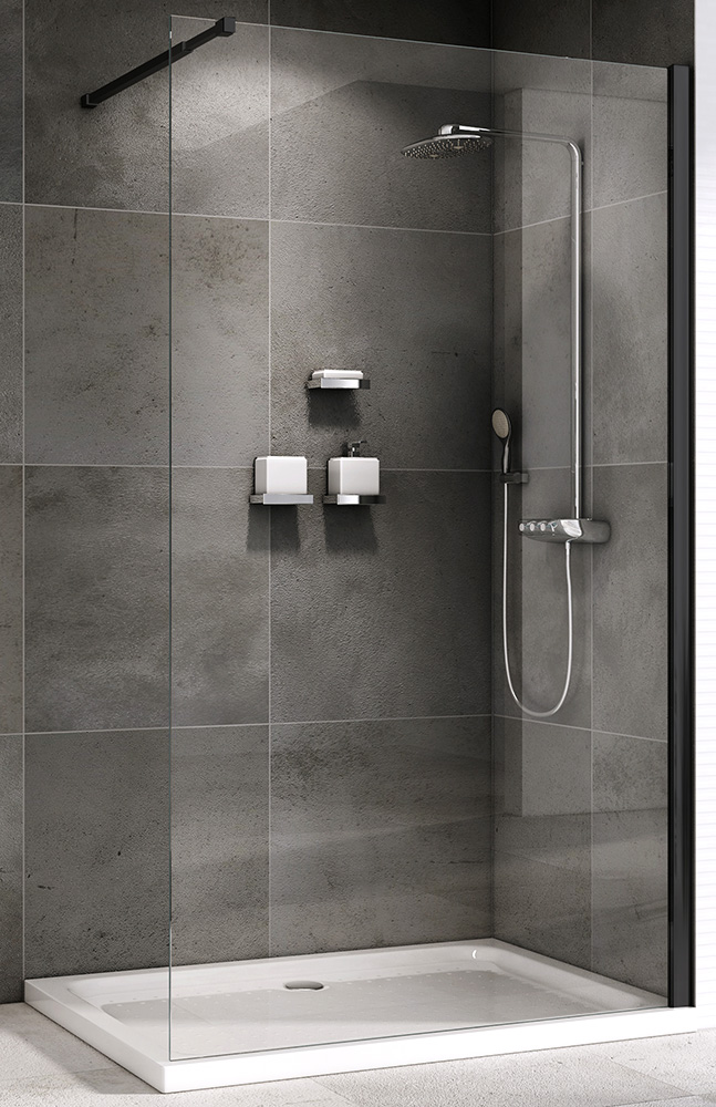 Душевая стенка Abber Immer Offen 120x200 стекло прозрачное, профиль черный (AG61120B8)